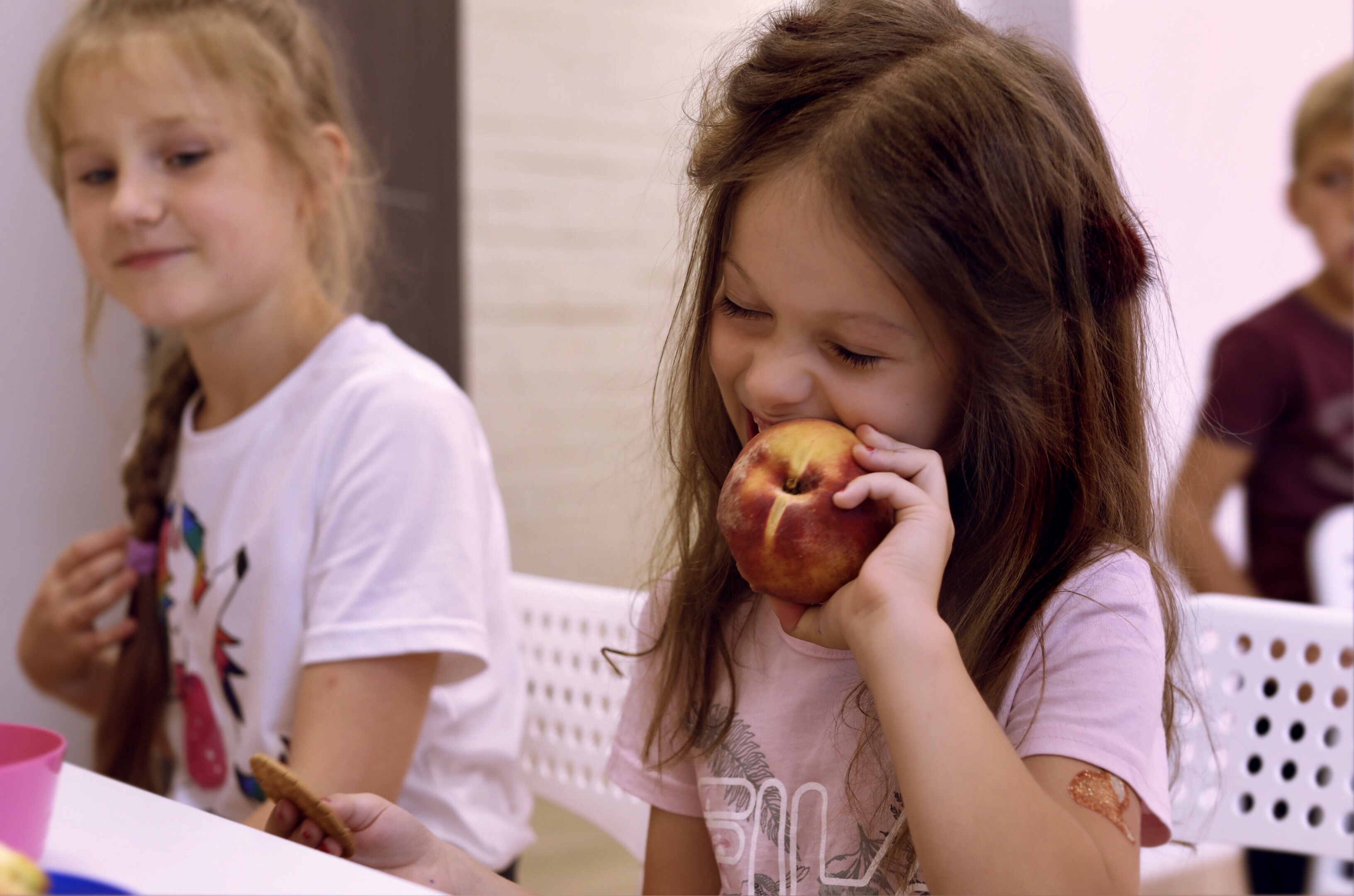 Протягом дня дитина отримує триразове харчування, яке включає в себе: перекус, обід та полуденок. Різноманітне меню розроблено спеціально з урахуванням особливостей здоров`я дитини. Смачна та корисна їжа, яку готує професійний кухар допоможе вихованцям школи бути завжди енергійними, здоровими та активними, а також привчає до правильного харчування.